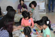 花壇ボランティアさんたちの呼びかけで、「子ども花壇ボランティア」を結成し、今年度で2年目。花壇の手入れもそうですが、花壇のかざりづくりも子どもたちに手伝ってもらいます。今年度も20数名の児童が、ボランティア員になりました。今日はペットボトルに色を塗って、風車を作成していました。子どもたちと大人たちのボランティアのコラボレーションは、たいへんすてきな活動です。