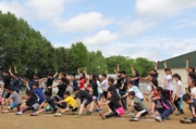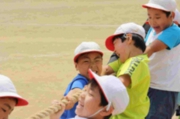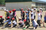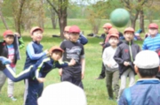 恵みの雨 新競技「たてわり対抗大玉」練習