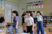今年度より全校種目に新しくたてわり班対抗種目が登場します。たてわり班8つのチームに分かれて大玉を頭の上で送るリレー種目です。初めての種目ということもあり、今日はたてわり班活動の時間に体育館で練習をしました。大玉を送るコツを少しずつつかんだようです。次回は外での練習になります。どの班が優勝するのか楽しみです。