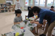 毎年,本校の教育研究会では,のぞみ学級の児童が生け花を生けて校内に飾り,お客さま方をおもてなししています。6名の児童で校内のあちこちに飾るため多くの作品を手がけました。,こもれび学級の先生方の指導を仰ぎながら,個々のアレンジを加えてとてもきれいに生けることができました。明日の教育研究会では,こちらの作品もぜひ,見てもらえれば嬉しいです。明日は実り多い研究会となりますように・・・。