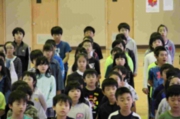 集団下校訓練はどの学校でも,もしもの時を想定して行いますが,帯小では,その緊急性の度合いによって「保護者引き取り」「方面別教員引率集団下校」「方面別集団児童下校」と3つのパターンの集団下校を想定しています。今回は,緊急性の低い「方面別集団児童下校」を行いました。同じ下校時刻となった4~6年生で行い,6年生が先導し,安全に気を付けて下校し,その様子を先生方が巡回し確認をしました。各グループごとにまとまって,しっかりと下校できました。