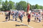 2時間目に全校児童がグラウンドへ集合し、開閉会式の練習を行いました。今年度より、入場行進はグラウンドを1周せずに、児童席から観客席に向かって直線の入場行進を行います。その入場練習や礼の練習、応援団長の優勝旗返還や賞状の授与の練習、1年生の選手宣誓の練習など、盛りだくさんに行われました。これから毎日1時間は全校での様々な練習が予定されています。早ね・早起き・朝ごはんで、運動会練習をがんばろう!