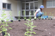 花壇ボランティアさんたちの呼びかけで、「子ども花壇ボランティア」を結成し、今年度で2年目。花壇の手入れもそうですが、花壇のかざりづくりも子どもたちに手伝ってもらいます。今年度も20数名の児童が、ボランティア員になりました。今日はペットボトルに色を塗って、風車を作成していました。子どもたちと大人たちのボランティアのコラボレーションは、たいへんすてきな活動です。