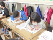 のぞみ学級6名の教室をのぞいてみると、音楽の学習をしていました。みんな楽しく笑顔いっぱいで学習をしていました。もうすぐ桜も咲くということもあって「さくら さくら」を歌いました。その後はなんと手話を交えての歌を2曲も歌いました。みんな手話をしっかり覚えていてびっくりです。絵かき歌では、こいのぼりも上手にかけました。とっても温かな雰囲気の教室でした。