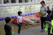 花壇ボランティアさんは,今年度特別支援学級「のぞみ学級」のイメージキャラクター「のぞみん」をモチーフにした花壇を作成しました。花盛りとなった今月,「のぞみん」の着用しているスカートが風に揺れる感じがとてもきれいに表現されました。そんなドレスガーデンで記念写真を撮影しようと,ボランティアさんが呼びかけをしてくださり,なかよしタイムに子どもたちが多く集合しました。満面の笑みでポーズをとる子どもたちは,とてもうれしそうで,みんないい顔をしていました。