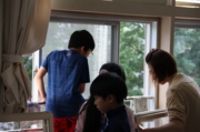 夏休みまであと2週間。こもれび学級全員が一堂に会して学習をする機会はあまりないのですが,今日は全員と保護者の方々にも足を運んでいただいて,夏のお楽しみ会を開催しました。今回は,フルーツパフェを作って楽しみました。バナナやフルーツ,チョコなどのデコレーションに楽しそうに取り組んでいました。窓ガラスには,全員が製作した「グラスデコ」というステンドグラスのような作品が飾られ,とてもきれいでした。