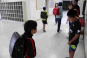 保体委員会では,「朝のシャトルラン」を開催しています。学年ごとに日にちを指定し,朝の8:05~8:15のきらめきタイム(朝学習)時間前に行っています。今日は4年生の男子のシャトルランが行われていました。4年生の男子はもちろん,保体委員長自らも一緒に走り,率先して汗を流していました。体力づくりは,続けることが大切です。年間を通して,保体員会は様々な企画や呼びかけをし,体を動かす習慣を身に付けるよう活動をしています。