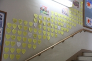 帯広小学校では,全校児童が目にする階段に「かがや木」という気を飾り,ハートの形をした葉がついて大きな木に成長をしていきます。葉の形をしたカードには,全校児童・教職員・保護者の方が行事の際に自分のがんばりや,子どもたちのがんばり、心の成長を記したメッセージが書かれており,全校で共有をしています。道徳教育の一環として行われているこの活動は,帯小の教育活動にすっかりと定着しました。1学期が終わるこの時期,「かがや木」の木にはたくさんの葉が茂っています。